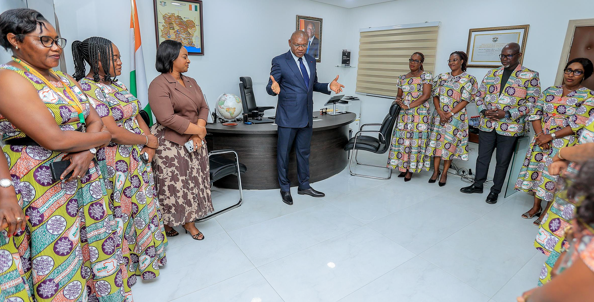 Cette cérémonie a été précédée, quelques jours avant, de la présentation au Ministre du Budget et du Portefeuille de l’Etat, des prix décernés à la DGMP, par le Directeur Général des Marchés Publics, M. YOUL Sansan François, accompagné de ses proches collaborateurs.